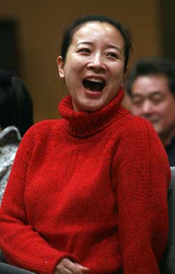 昨天,北京人藝2008年的開年大戲《蓮花》正式建組。主演陳小藝和導演任鳴不約而同穿著大紅毛衣露面!拔覀冞@是圖吉利啊!弊趯а萆砼缘年愋∷嚥缓靡馑嫉卣f。自從出演過話劇《狗兒爺涅槃》,陳小藝已經5年未上舞臺。她這次扮演的是個名叫蓮花的剛烈女子,一心要丈夫成器,等賣古玩賺了錢丈夫變心后,又毅然與丈夫一起赴死!拔一藘蓚小時看完了鄒靜之先生的劇本,當時就決定要出演該劇了。這個戲太像現實中的男女了,會讓男女觀眾同時發出共鳴。”