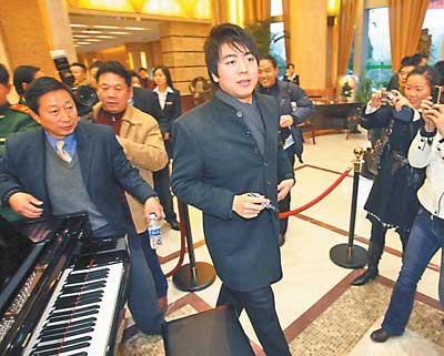 昨日的媒體見面會定于下午4點鐘,郎朗20日才從法蘭克福飛回中國,先是飛到北京,然后再轉乘飛機到重慶。因此,郎朗不但時差沒有倒過來,而且10多個鐘頭的空中飛行已把他折磨得疲倦不堪,走進消防總隊培訓中心提供的房間,倒在床上就睡著了,把媒體見面會全忘了。