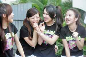 5月5日,黑澀會美眉與黑人來到廣州體院拍攝外景,參觀大學(xué)里四個各具特色的社團——雙截棍、舞獅、武術(shù)及戲曲團。俗話說,三個女人一臺戲,這8妞妞湊在一起,雖然馬不停蹄地趕通告,同樣不影響她們旺盛的精力及古靈精怪的個性,全程不斷大笑、嘰嘰喳喳,閑聊一刻不停歇,有時還需要工作人員提醒才乖乖地收口,談?wù)摰脑掝}更是包羅萬象,從蚊子咬的包到路人很瘦的腿,都能引起她們強烈驚嘆。