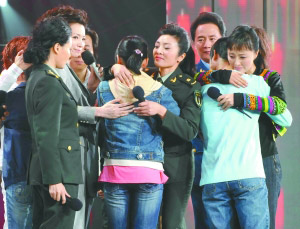昨晚,由中宣部、文化部、國家廣電總局、新聞出版總署、解放軍總政治部、中國文聯(lián)、中國作協(xié)共同發(fā)起,中央電視臺承辦的大型抗震救災(zāi)大型募捐活動《愛的奉獻》在央視一套、三套、四套并機現(xiàn)場直播。在晚會現(xiàn)場,來自新聞、影視、作家、歌曲、軍旅、戲曲等各行各界的文藝工作者對災(zāi)區(qū)人民進行了捐款,截至昨晚23點40分,晚會現(xiàn)場募集捐款15億余元。久未登臺演唱的王菲也來到了現(xiàn)場,和陳奕迅、楊乃文、阿牛一起演唱了《但愿人長久》。最讓人高興的是,曾經(jīng)被溫家寶總理拉著手慰問的“孤兒”白琳通過直播晚會,找到了她的父親。