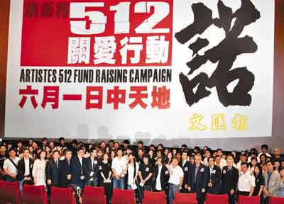 據(jù)香港文匯報報到,昨日近兩百余演藝界人士參加了記者會,短短十五分鐘談話便結(jié)束,會上先由活動召集人劉德華發(fā)言,他先為各界的支持致意,華仔又哽咽地說:“四川大地震發(fā)生,演藝界短短時間內(nèi)發(fā)起行動,大家勞心勞力,但這份熱情不是一時三刻,重建需時要三、五、七年,重建災(zāi)民的生活,是我們的承諾,我特別多謝中聯(lián)辦及香港電影發(fā)展基金于行動中的協(xié)助,以及西九龍中天地六月一日借出場地舉行賑災(zāi)大匯演,由于時間倉卒,不夠時間向有關(guān)政府部門申請,但深信活動會得到大家的響應(yīng)及支持,寄望天佑四川,天佑中國。”