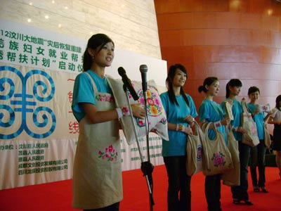 在稍后的一周時(shí)間內(nèi),5位中華小姐將前往羌民族世代聚居、同時(shí)也是受地震破壞嚴(yán)重的汶川、理縣、茂縣等地,與羌族婦女一起住帳篷、做刺繡,了解羌繡手工技藝、感受和記錄災(zāi)區(qū)同胞在災(zāi)后重建階段的生活狀況。5位華姐義工將在“壹基金”位于四川當(dāng)?shù)氐那祭C幫扶中心的培訓(xùn)指導(dǎo)下,了解羌繡的生產(chǎn)流程、參與產(chǎn)品的設(shè)計(jì)包裝,在進(jìn)行全面深入調(diào)研的基礎(chǔ)上集體完成羌繡幫扶報(bào)告并制定羌秀推廣計(jì)劃。5名華姐義工,有學(xué)習(xí)傳媒專業(yè)的,也有學(xué)習(xí)服裝設(shè)計(jì)專業(yè)的,我們會(huì)設(shè)計(jì)出有針對(duì)性和可行性的羌繡推廣方案,通過(guò)報(bào)紙、電視、網(wǎng)絡(luò)讓更多的人了解羌繡,同時(shí)也給羌繡手工藝品開(kāi)拓一片市場(chǎng),幫助受災(zāi)群眾盡快實(shí)現(xiàn)生產(chǎn)自救。”