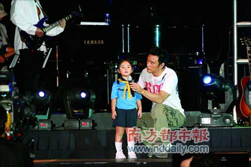 鐘鎮(zhèn)濤的女兒鐘懿是新加入的幼齡女童軍,父女同唱,場面感人。