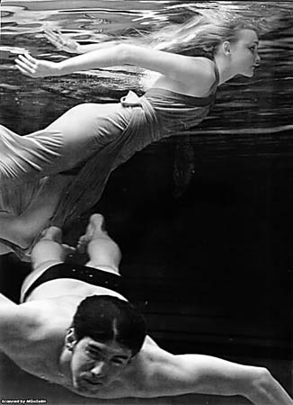 美國(guó)游泳天才菲爾普斯與名模卡羅琳·特提妮共同為某雜志拍攝了一組水中寫真。兩人在水里演繹浪漫情調(diào)。