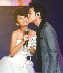 楊丞琳慶功演唱會(huì),特別嘉賓潘瑋柏帶來婚紗又獻(xiàn)吻。