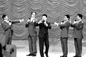 昨晚,央視2009年元宵晚會如期播出。由于是錄播,所以“我最喜歡的春節聯歡晚會節目”評選也已提前揭曉,《不差錢》拿下小品類一等獎,劉謙也奪得曲藝類一等獎(本報昨日已報道)。在元宵晚會上,小沈陽和劉謙的名字反復被眾多明星提及,而劉謙、朱軍更是模仿小沈陽的音調,引來陣陣笑聲。