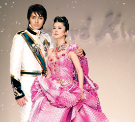 昨天的安德烈·金時裝秀,堪稱是一場唯美的視覺盛宴。在漫天飛雪中,張娜拉與8位模特身穿猶如百花綻放般五彩紛呈的禮服亮相,獻上了帶有濃濃春意的“春裝秀”。隨后,張娜拉攜手金俊分別身披晚禮服、宮廷禮服以及公主和王子服等8套禮服一次次走上秀臺。