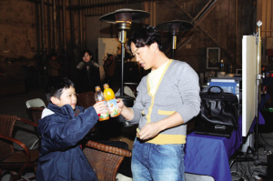 現(xiàn)場有一位“乘機(jī)潛入”的小歌迷,慕名來看偶像的演出。陳奕迅是娛樂圈中公認(rèn)的好父親,在家里對5歲的女兒寵愛有加,在外與別的小孩也能打成一片。在廣告拍攝過程中,陳奕迅突然走到這個小歌迷身邊,拿起手中的飲料和小歌迷碰杯,并與他一起合影,一大一小倆“頑童”的溫馨場面令在場人動容不已。○魯文靜