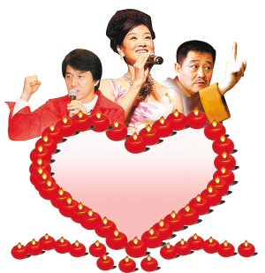 在“5·12”大地震一周年即將到來之際,5月10日上午,中央電視臺“心連心”藝術團將在四川綿竹舉行主題為“三百六十五個祝福”的大型慰問演出。目前,已經有成龍、趙本山、宋祖英等近百位明星踴躍報名,表示將免費參演。