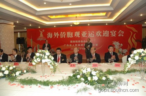 國僑辦副主任趙陽出席午宴并做了熱情洋溢的致辭。他說,亞運是亞洲地區規模最大、水平最高的綜合性運動會,為推動亞洲體育事業發展、增強團結、友誼和了解做出了積極貢獻。他對在廣州亞運申辦和籌備工作中,海外僑胞支持亞運的決心和行動,表示充分肯定。他對海外僑胞關心、支持中國經濟發展和社會進步,積極促進中外友好,熱心僑社公益事業,表示高度贊賞。他希望,廣大僑胞在發展自身事業、推動住在國發展的同時,努力做中國現代化建設的積極參與者,做中國統一大業的積極促進者,做中華文明的積極傳播者,做中國人民和世界各國人民友好交往的積極推動者,為家鄉繁榮、祖國富強、民族振興繼續貢獻力量。