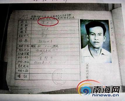 陳良維說,經(jīng)過查詢父親檔案,父親原來在馬來西亞生活時,名字叫李燕鴻(音),1915年6月出生于馬來西亞馬六甲,祖籍福建,從祖代起在馬來西亞馬六甲定居。在他原來的家族里,父親陳亞九(李燕鴻)共有親兄弟6人,他在家中排行第三,在馬來西亞的親人上有兩個大哥、下有3個弟弟,大哥做工、二哥捕魚、四弟做橡膠買賣,五弟和六弟當(dāng)司機(jī)。家里有樓房和商鋪,還有其它產(chǎn)業(yè),父親陳亞九出生時祖父就已去世。原來的家庭住址為馬來西亞檳城大車路71B。