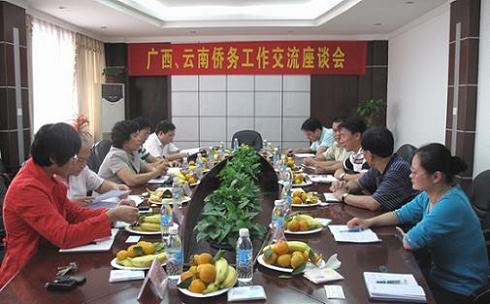 中新網10月29日電 據廣西僑辦消息,10月28日,為辦好第八屆東盟華商會,云南省僑辦副主任張新明一行6人來到廣西,拜訪廣西僑辦。廣西區僑辦舉辦座談會,雙方共同交流開展僑務經濟科技工作的經驗和方法,并商議第八屆東盟華商會籌備工作的有關事宜。廣西區僑辦副主任林容蓉及有關處室領導參加座談會。