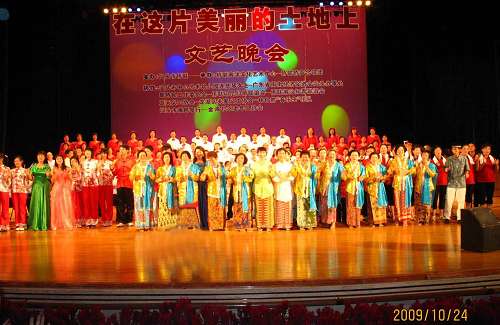 中新網10月29日電 據汕頭市僑聯消息,為紀念廣東省汕頭市解放60周年,10月24日晚,由汕頭市僑聯主辦,僑聯南洋文化藝術中心、僑聲合唱團聯合承辦的“在這片美麗的土地上”文藝晚會在林百欣會展中心舉行。汕頭市政協副主席蔡嬋英,汕頭市僑聯及歸僑僑眷1000多人觀看了演出。