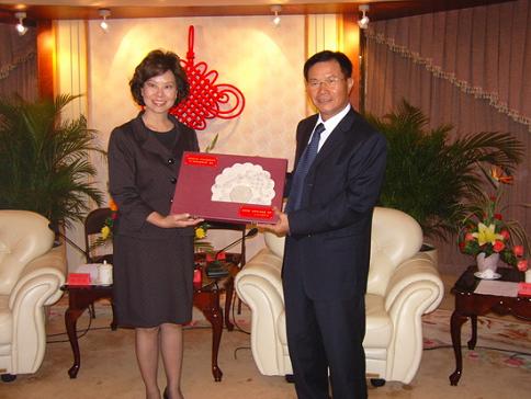 金秋十月的鮀城,山青水秀,風光迷人,給首次蒞汕的趙小蘭女士一行留下美好的印象。10月23日晚,趙小蘭接受汕頭市委副書記鄧大榮、副市長周鎮松等市領導的會見時,稱汕頭是一座美麗的海濱城市,從短短一天的參觀中,可以看出汕頭的工業非常發達,環境保護工作做得非常好,希望汕頭發展得越來越好。