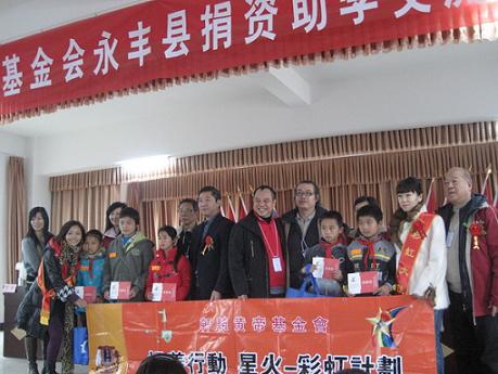 香港龍山基金會(huì)屬于非營利性慈善組織,由江西省港澳區(qū)政協(xié)委員鄧國容先生會(huì)同有識(shí)之士創(chuàng)建,多年來該基金會(huì)一直關(guān)注永豐縣教育事業(yè)、關(guān)注永豐縣貧困學(xué)生。星火——彩虹計(jì)劃是由龍山基金會(huì)和軒轅黃帝基金會(huì)聯(lián)手創(chuàng)辦的助學(xué)扶貧計(jì)劃,主要是扶持江西省革命老區(qū)、少數(shù)民族地區(qū)及貧困山區(qū)的文教事業(yè)。自2004年起,星火——彩虹計(jì)劃已經(jīng)組織了多次“贛港心連心”江西訪問交流團(tuán)來該縣開展捐資助學(xué)活動(dòng)。累計(jì)已援建龍岡畬族鄉(xiāng)中心小學(xué)教學(xué)樓、瑤田鎮(zhèn)三灣小學(xué)軒轅黃帝教學(xué)樓、八江鄉(xiāng)高家小學(xué)軒轅黃帝教學(xué)樓、潭頭鄉(xiāng)楊梅江小學(xué)白求恩教學(xué)樓,資助金額42萬元;資助全縣21個(gè)鄉(xiāng)鎮(zhèn)貧困學(xué)生400人次,資助金額12萬元;捐助教學(xué)用品及學(xué)生學(xué)習(xí)、生活用品折合人民幣達(dá)5萬多元。