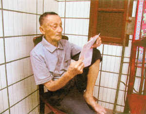這是一張普通的照片。11月19日,當海南日報記者在東方市八所鎮的一處僻靜的院落中見到這張照片時,迅速被老人一臉專注的神情抓住了,他正細細端詳著一張信紙,眼眶微微發紅,似乎某些信息勾起了老人悲傷的記憶。