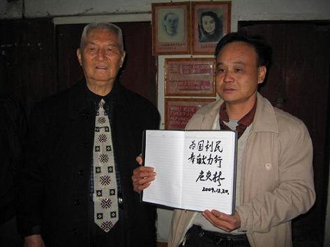 當天下午,年近九旬的莊炎林,不顧旅途的疲勞,在梧州市僑聯主席鐘小欣、蒼梧縣統戰部部長李燕芬等領導的陪同下,來到蒼梧縣石橋鎮中心小學考察。其中心小學是莊炎林先生在抗日戰爭期間,以教師身份掩護開展地下工作的地方。今日重游故地,莊炎林先生格外激動,并向陪同人員講起了當年的工作情景。隨后莊炎林先生一邊聽取該學校的情況,一邊參觀當年曾用過的工作室,并在留言簿上題詞:為國利民,奉獻力行。(蔡光天)