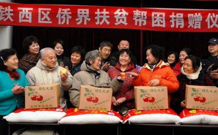 中新網1月25日電 據中國僑聯網站消息,1月19日,遼寧省沈陽市鐵西區僑聯、鐵西區僑商會在興工九委社區舉行了“鐵西區僑界扶貧幫困捐贈儀式”,為特困歸僑僑眷送溫暖、獻愛心。