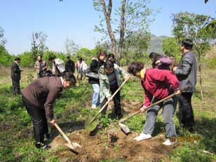 福建省僑聯副主席楊崢嶸、謝小建、福州市人大副主任陳樹雄、市政協副主席陳震宙、福州市僑聯黨組書記、主席藍桂蘭、福州市僑聯副主席、鼓樓區僑聯主席李盛玉、永泰縣僑聯黨支部書記汪秀錦等領導與青年委員和僑聯機關干部共同栽下近百株的桃樹和桂花樹,并細心地為每棵樹苗系上簽有自己名字的綠葉圖形標識,寓意僑聯事業與樹苗一同成長壯大、煥發生機活力。