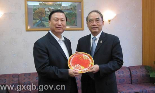 3月26日,馬來西亞雪隆廣西會館和泰國廣西總會永遠名譽會長饒培中到訪廣西,馮祖華接待了到訪的客人,向他們通報了廣西的旱情,馬來西亞雪隆廣西會館和泰國廣西總會永遠名譽會長饒培中當即分別向廣西災區捐款一萬元和一千元。