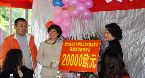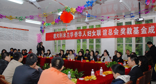 中新網4月7日電 據文成縣外僑辦消息,4月2日,在浙江省文成縣龍川中心學校隆重舉行意大利米蘭華僑華人婦女聯誼總會獎教基金成立儀式。由榮譽會長廖小平、會長趙小敏率領的米蘭華僑華人婦女聯誼總會代表團一行16位愛心女士,出席了獎教基金成立儀式,為龍川中心學校送上首期獎教基金20000歐元。