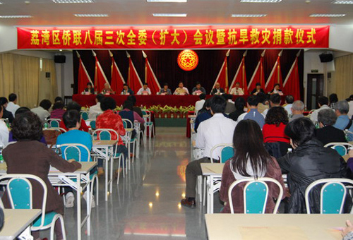 會上,荔灣區僑聯主席朱小玲作區僑聯八屆三次全委會工作報告,增選了區僑聯委員。向西南災區捐款是本次會議的高潮,來自荔灣區僑界的熱心企業家共15人,通過區僑聯,向西南災區捐款共97000元。荔灣僑商會、振興、博亞、大萬福、斯力高、高士等企業均捐款1萬元。廣州市僑聯副主席孫穗君、荔灣區委副書記羅思源代表區僑聯一一接過企業家的捐款。