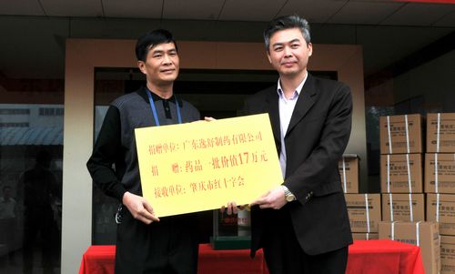 廣東逸舒制藥有限公司董事長黃慶文出差在外,當(dāng)他接到市僑聯(lián)的倡議后,第一時間表達(dá)了向玉樹災(zāi)區(qū)捐款捐物的意愿。他急災(zāi)區(qū)群眾之所急,立即組織企業(yè)員工加班加點,加量生產(chǎn)大批災(zāi)區(qū)急需的抗生素等藥品,并特地委托公司總經(jīng)理黃慶雄參加捐贈儀式捐贈藥品。儀式上,肇慶市僑聯(lián)主席黃志堅向廣東逸舒制藥有限公司及其全體員工對積極參與捐贈活動表示衷心的感謝;他指出,災(zāi)害無情,人間有愛,我們雖遠(yuǎn)離玉樹,但與災(zāi)區(qū)人民感同身受,此刻奉獻(xiàn)一份愛心,盡一份綿薄之力是我們情系災(zāi)區(qū)最好的表達(dá)方式。隨后,黃慶雄總經(jīng)理代表公司把藥品和善款親自交到市紅十字會主任徐永飛手中,為感謝廣東逸舒制藥有限公司的善舉,市紅十字會也回贈了“紅十字愛心單位”牌匾。