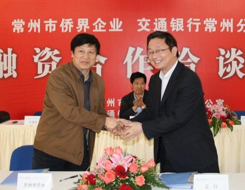 中新網5月4日電 據常州僑網消息,4月28日下午,江蘇省常州市僑辦、市交行聯合舉辦了“常州市僑界企業融資合作洽談會”。