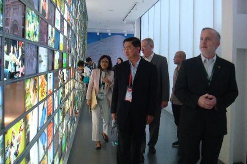 在聯(lián)合國館項目服務(wù)商、美國全美蘇浙同鄉(xiāng)總會會長朱元忠的陪同下,崔明華一行又參觀了上海世博會聯(lián)合國館,并體驗了在聯(lián)合國館內(nèi)舉行的中國茶藝表演,并于聯(lián)合國副秘書長阿瓦尼·貝南進行了親切的會談。崔明華最后也在留言薄上題詞:“和諧之理念,發(fā)展之動力。”