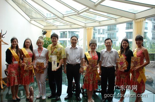 中新網(wǎng)6月12日電 據(jù)廣東僑網(wǎng)消息,6月11日上午,廣東省僑辦副主任林琳、副主任鄭建民在省僑辦會見了美國夏威夷州長林格及夏威夷中華總商會第61屆水仙花皇后友好代表團一行35人。