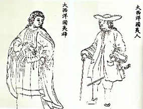 1751年,乾隆皇帝下令編撰《皇清職貢圖》一書時,由中國宮廷畫師描繪的葡萄牙男人、婦女的形象。