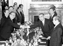 圖文:朱镕基總理與出席歡迎儀式的日方官員握手